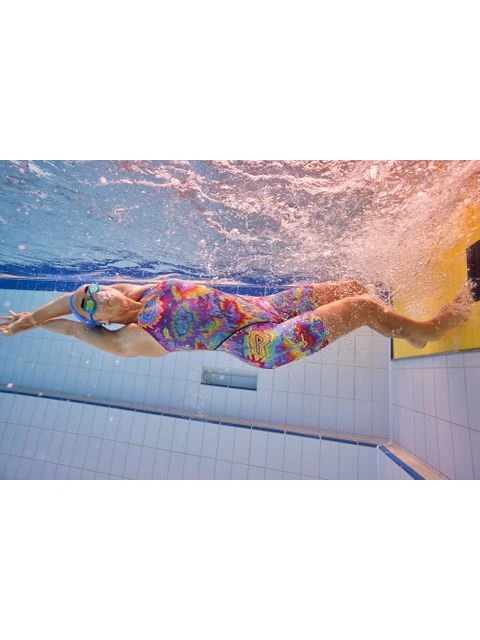 The AMANZI Euphoria Kneelength is made from Armor chlorine resistant fabric making it ideal as a training swimsuit and as an entry level racing swimsuit. The kneelength has been engineered to fit the needs of competitive and active swimmers, as well as triathletes and open water swimmers. The wide shoulder straps and back band are placed between the shoulder blades allowing maximum freedom and ease of movement whilst swimming. They also provide added support to the bust area. The wide open back follows the natural contours of the body providing an ergonomic fit and superior comfort.Â