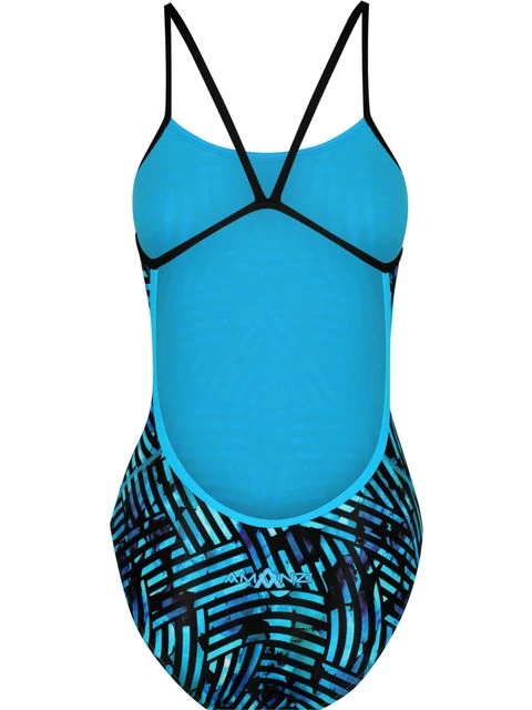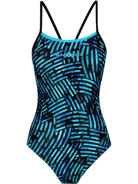 The AMANZI Zephyr Pro One Piece is an all purpose training swimsuit engineered to fit the needs of both competitive and active swimmers. The thin shoulder straps are designed to reduce the weight placed on the neck and shoulder muscles and allow for maximum freedom and ease of movement whilst swimming. The wide open back follows the natural contours of the body providing an ergonomic fit and superior comfort. The medium cut leg is suitable for all figures.