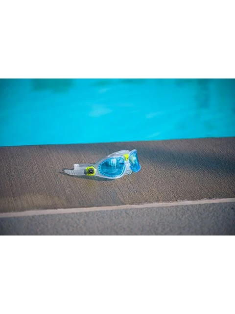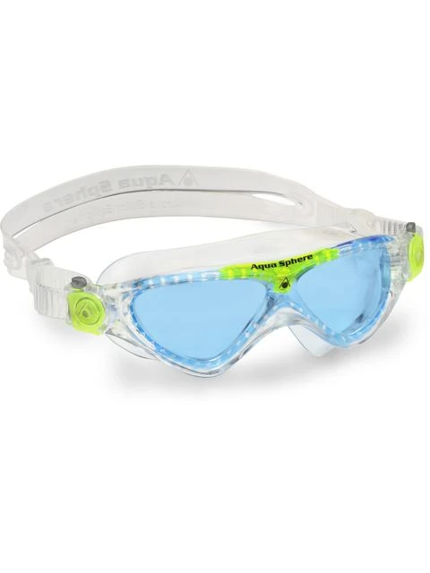 The Aqua Sphere Vista Junior Swim Mask – Tinted/Clear/Lime have been designed specifically for junior swimmers ages 6 years and up. The Vista Junior Swim Goggles fit like a mask by sealing around the outside of the eyes, eliminating any pressure on the eye sockets. This creates a more comfortable, leak free fit so your kids can wear them all day without worrying about getting water in their eyes.
