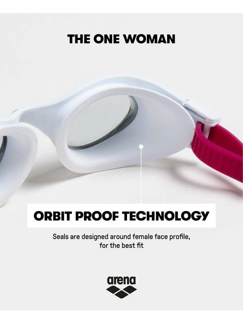 The Arena The One Woman Smoke Goggles – White are specifically designed for women, proving a smaller fit, feminine coloursand a more gentle touch on the skin. The One Woman Goggles are designed to fit every woman thanks to its exclusive gasket design, created as a result of the study of the human face and eye orbit. This makes it a one size fits all style goggle, great for female triathletes, squad and fitness swimmers.