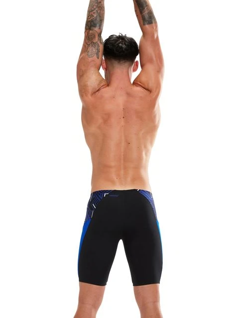 The Speedo Splice Jammers – Chroma Blue have tech-inspired aesthetics with a streamlined silhouette. Designed with a bold blue and white panel print that was inspired by the geometric lines of Sydney’s iconic Bondi Icebergs pool. A power mesh rubberised liner provides enhanced comfort and support during training, while the drawstring waist allows an adjustable fit. Designed to be durable and better for the environment, the jammer features the new Speedo ECO Endurance+ MAX fabric, which is 100% chlorine resistant, quick-drying and made from 100% recycled post-consumer waste.