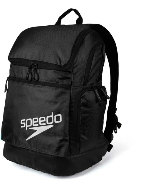 The Speedo Teamster 2.0 Backpack – Black is the does-it-all backpack with generous pockets a -plenty, a water bottle holder and even a dedicated laptop sleeve. Super durable, it includes a water resistant base for peace of mind in the changing room. There’s room for all your gear packed into an updated, sleek design with a hidden front pocket.