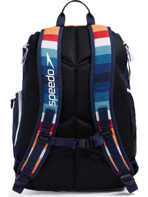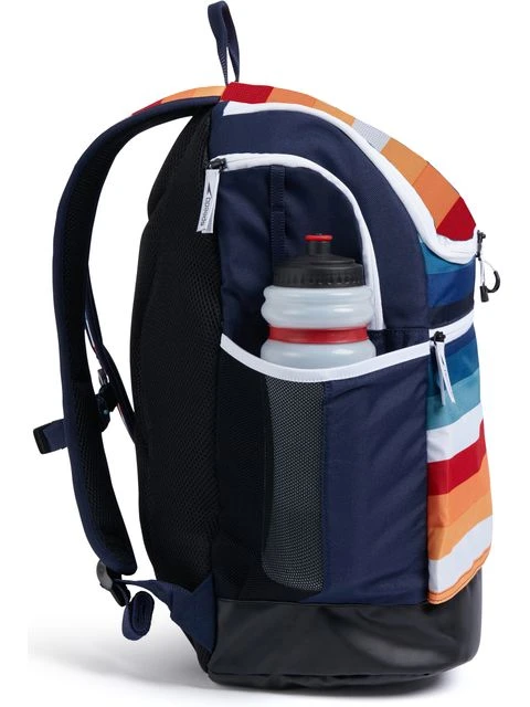 The Speedo Teamster 2.0 Backpack – Stripe is the evolution of the original Speedo Teamster Backpack. With the same 35L storage space as the original, there’s room for all your gear packed into an updated, sleek design with a hidden front pocket. The Teamster is the go to backpack for swimmers.
