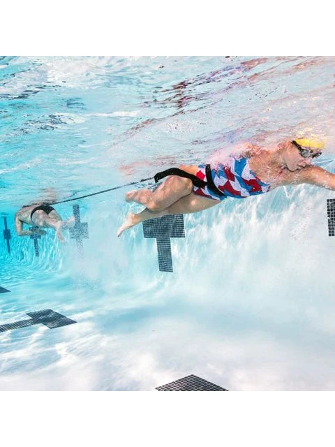 The StrechCordz Grudge Belt S120 adds competition to resisted swimming for two-person tug of war, barge pulls and many other exercises. Competitive swimmers improve strength, form and times. Swimmers use StrechCordz resistance exercise products to improve stroke, strength and endurance.