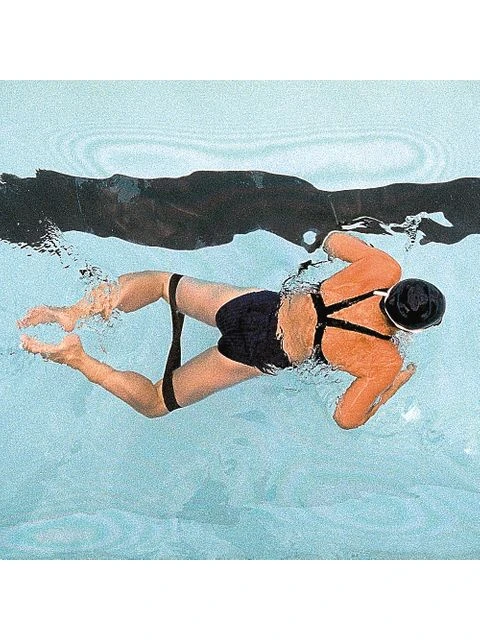 The StrechCordz Knee Elastic S1225 fits above the swimmers knees to provide resistance and control the position of the legs during breaststroke kick. It also assists with recovery from groin injuries. Swimmers use StrechCordz resistance exercise products to improve stroke, strength and endurance.