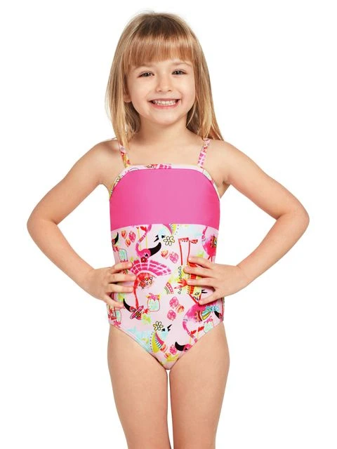 The Zoggs Classicback One Piece – Chick Party is sure to boost your child’s confidence with its beautiful split design. The cute and funny bird characters are sure to make your little one laugh too! The Classicback design makes it a breeze to get little ones in and out of, plus there’s front lining for extra coverage. Designed in highly chlorine resistant, comfortable and durable Ecolastâ„¢ fabrication. It’s sustainable too, made from recycled plastic bottles!Â