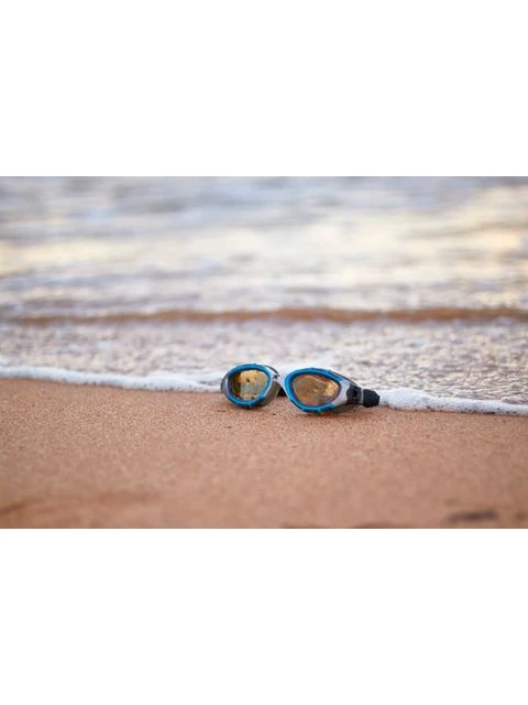 The Zoggs Predator Flex Polarized Ultra Reactor Goggles Small Fit – Copper/Blue/Silver take innovative and next generation designs to the next level. The Predator Flex Polarised Ultra Reactor Goggles feature 3D Flexpoint Technology that provides enhanced frame felixbility and a customised fit. Along with a frame that allows the goggles to ‘flex to the face’, the Ultra Reactor lenses are photochromatic react to the suns rays for a darker tint in brighter conditions and perfectly clear visability for indoor swimming.